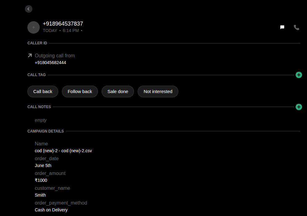 This is how the other fields will be reflected in call detail section of Jaxl Business Phone –